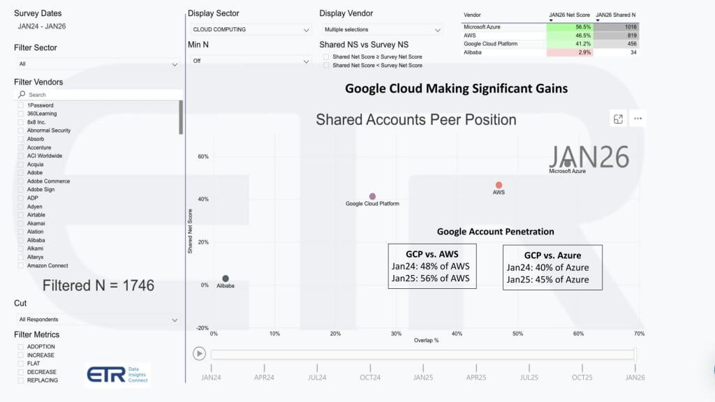ETR cloud sector view: Azure is dominant, and GCP is closing the account penetration gap