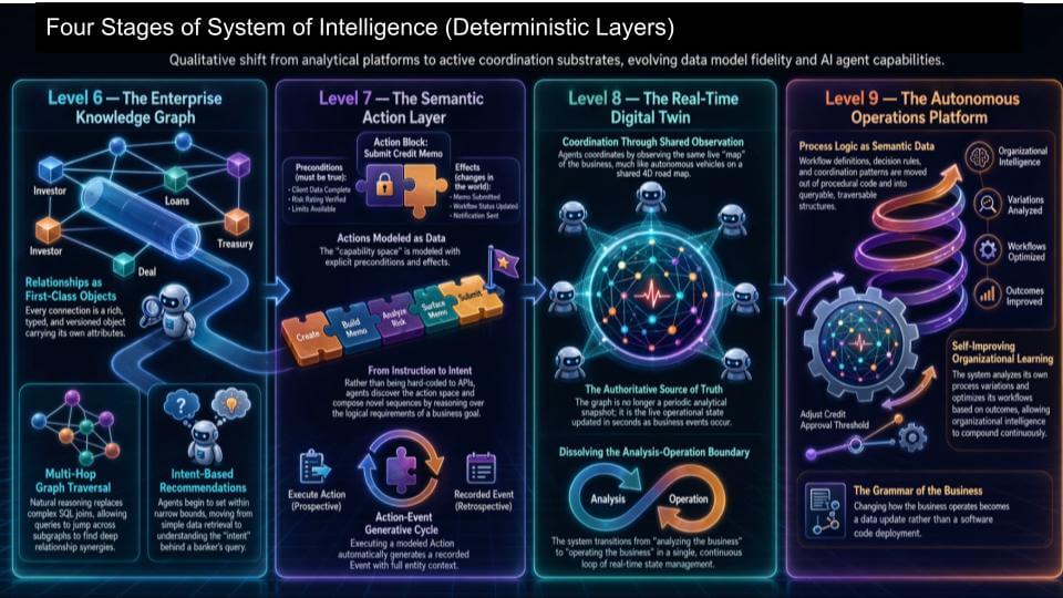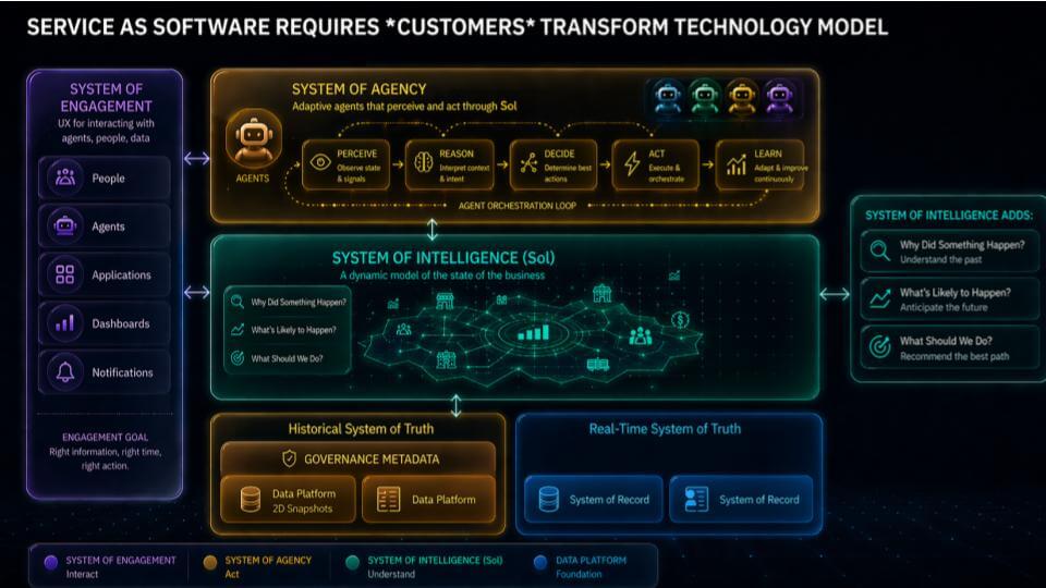 - The end state is a digital twin of the enterprise – the substrate required for a system of intelligence and outcome-level agents.
