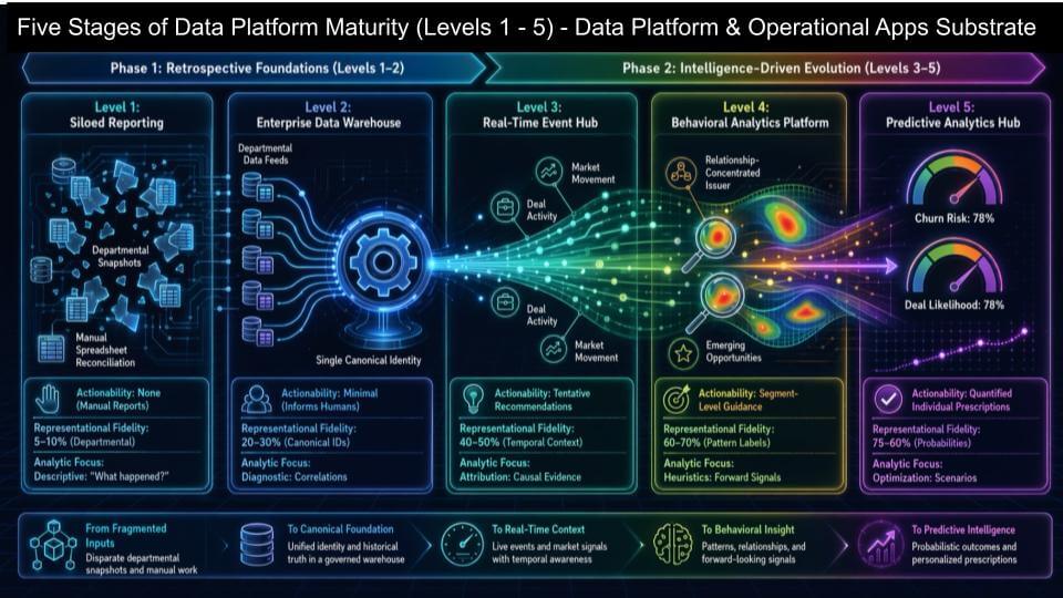 - Levels 4 and 5 introduce behavioral insight and prediction – as an overlay/value-add layer, not necessarily a walled garden;