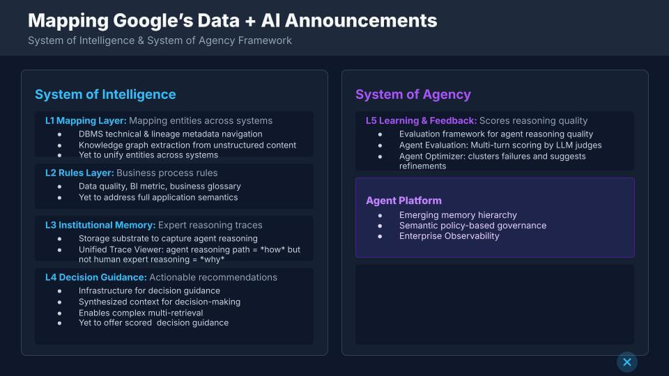Mapping Google’s Data + AI Announcements to the System of Intelligence and System of Agency