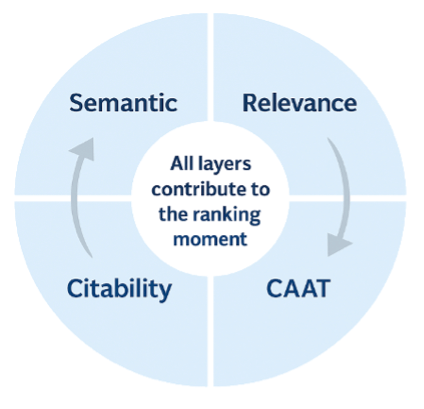 Its four-layer architecture—Semantic, Relevance, Citability, and Validation—maps directly to how AI systems build knowledge, match buyer intent, select sources, and apply trust. By assessing 19 key attributes across these four interconnected layers, it can analyze patterns across many weak and strong signals simultaneously.