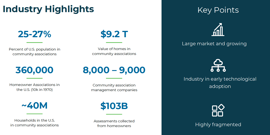 Furthermore, the future opportunity is enormous. This market is one of the largest yet least-digitized service sectors in the U.S. About 27% of the U.S. population now lives in community associations, a number that continues to grow as 75% of new housing developments are built within these communities. Together, these associations collect over $103 billion annually in homeowner assessments and are supported by 8,000 to 9,000 management companies across the country.