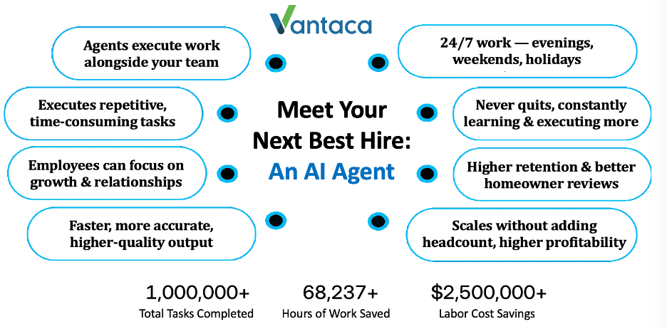 By deploying AI coworkers to handle operational tasks, Vantaca enables management companies to grow without proportionally increasing their staff and allows their human employees to focus on higher-value, more satisfying activities. Essentially, it grants them new “superpowers” to accomplish much more with minimal additional investment. This is how they help their customers turn AI adoption into direct growth and margin expansion.