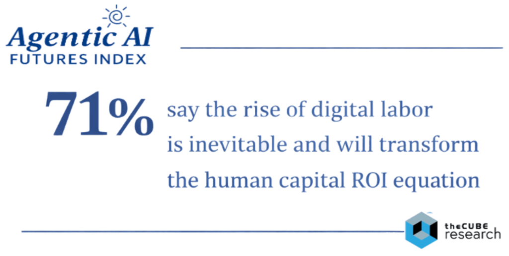 They are bringing the promise of digital labor transformation to life, and in our Agentic AI Futures Index survey of enterprise leaders, 71% said it is inevitable and will result in a fundamental transformation of the human capital ROI equation.