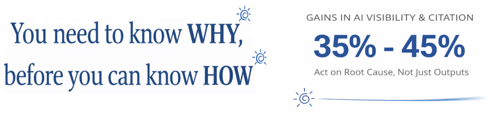 Without understanding root causes, action plans tend to default to more content, more publishing, or more technical optimization, without knowing which levers actually influence discovery, citations, shortlisting, or recommendations. Identifying the specific weaknesses across the influence chain turns AEO from a reactive guessing game into a defensible strategic Advantage. With the experience from nearly a dozen completed brand assessments, we are confident that this methodology, especially when paired with new AEO-ready content, will drive at least a 35% to 45% improvement in outcomes over the first 60 days. But the key is: You need to know WHY, before you can know HOW to improve outcomes.