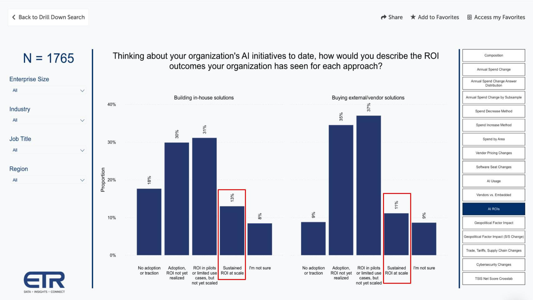 Recent industry conversions, most notably around the recent MIT AI study, have called into question the efficacy of AI investments. The takeaway of the study is that despite $30–40B in GenAI spend and widespread trials of tools like ChatGPT and Copilot, the findings suggest a stark “GenAI Divide,” where only ~5% of integrated pilots generate meaningful P&L impact while ~95% deliver zero return. Importantly, this poor showing is not due to models or regulation, but to brittle workflows, weak contextual learning, and poor fit with day-to-day operations.