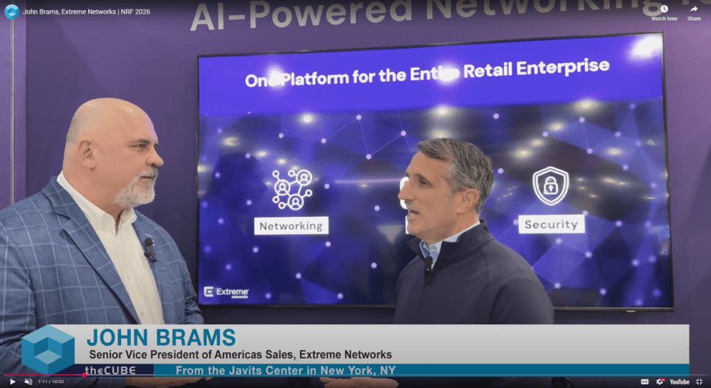 At NRF 2026, Extreme Networks outlined how retail organizations increasingly view the network not as basic infrastructure but as a strategic platform for operational efficiency, customer experience innovation, and data-driven decision-making. In a discussion with John Brams, SVP of Americas Sales, Extreme Networks, the focus centered on how modern wireless, fabric-based architectures, and AI-driven analytics are moving from concept to deployment, helping retailers translate long-discussed ideas, such as location intelligence, frictionless experiences, and IoT enablement, into measurable outcomes.