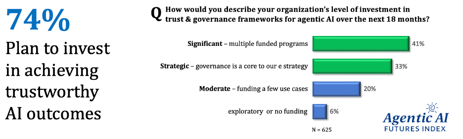 The enterprise market is ready for it. Organizations have also prioritized AI trust as a key investment area over the next 18 months, as the Agentic AI Futures Index has indicated.