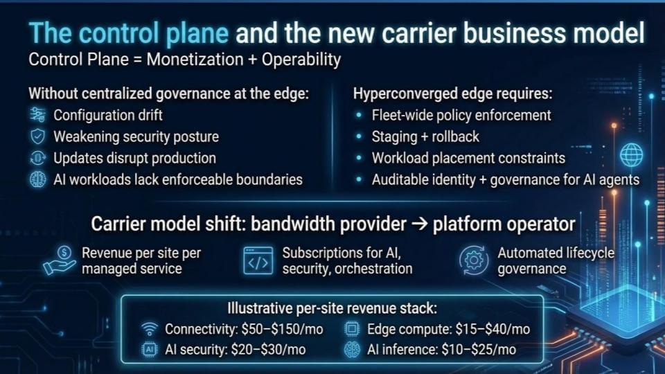 The path out of this endless cycle in our view is a carrier model that shifts from bandwidth provider to platform operator. The control plane is the linchpin because it connects monetization to operability and quality.