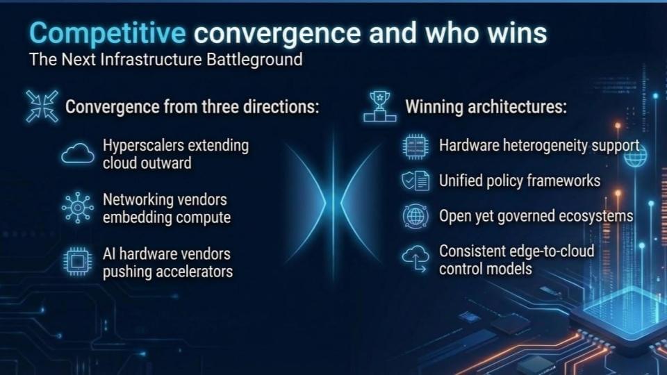 The edge opportunity is attracting competitors from every direction. Hyperscalers are pushing cloud outward. Networking vendors are embedding compute. Hardware vendors are pushing accelerators. Satellite services are coming. The market is converging because the TAM is large and the old boundaries are dissolving.
